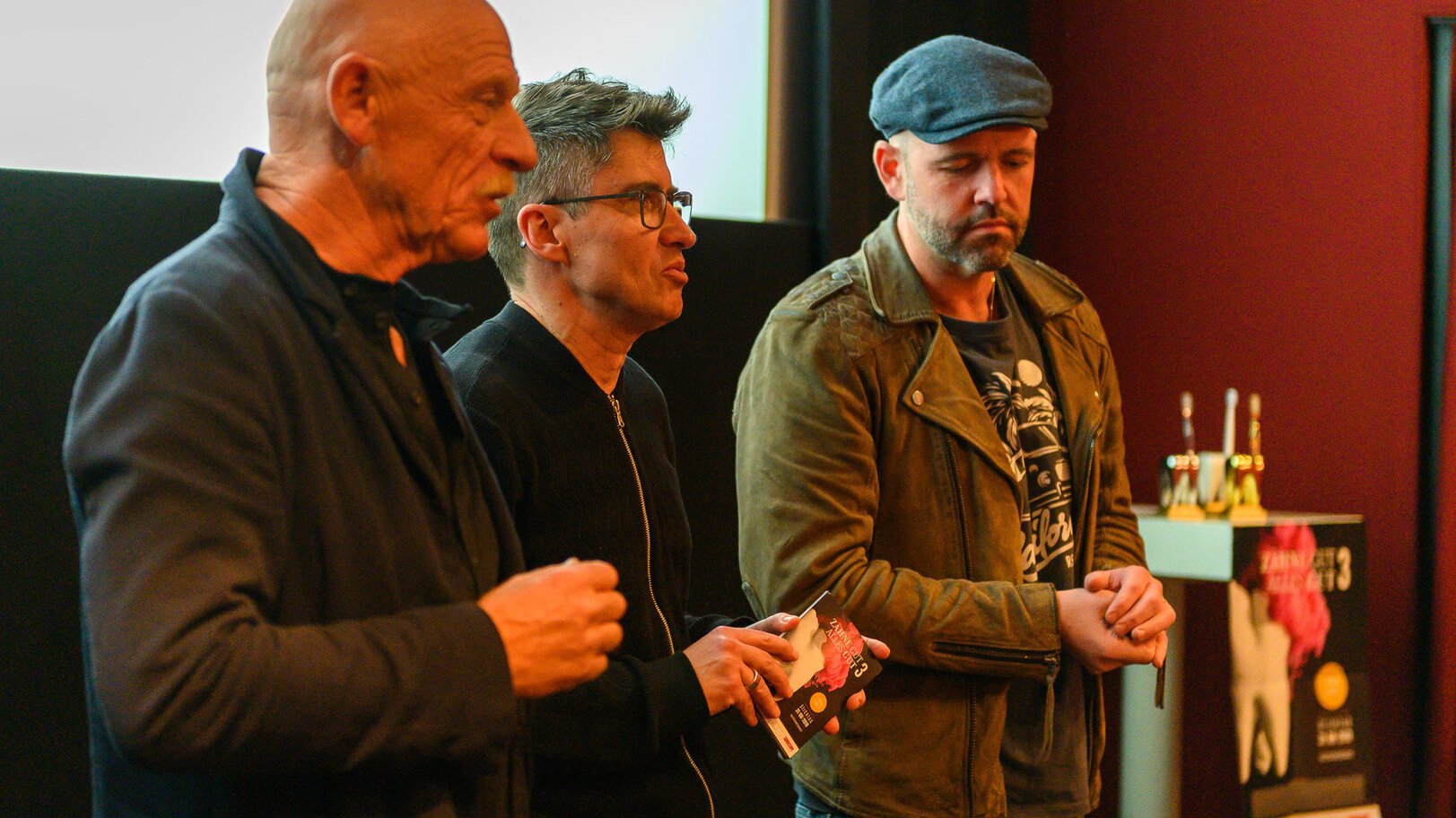 Insgesamt standen sechs Filme auf der Shortlist für den Kurzfilmwettbewerb „Zähne gut – alles gut 3“. proDente präsentierte bei der Preisverleihung im Off Broadway Arthauskino in Köln die sechs Kurzfilme vor Publikum. Durch die Veranstaltung führten die Juroren Joe Bausch, Doc Esser und proDente-Geschäftsführer Dirk Kropp. Sie hatten die Finalisten zuvor aus allen Einsendungen ausgewählt. Dabei waren sie von der Bandbreite der Einsendungen überrascht. „Das ist eine enorme Range, die die Filmemacher hier gezeigt haben. Musikalisch, lyrisch, humorvoll, informativ, ästhetisch – es war alles dabei“, kommentierte Joe Bausch.