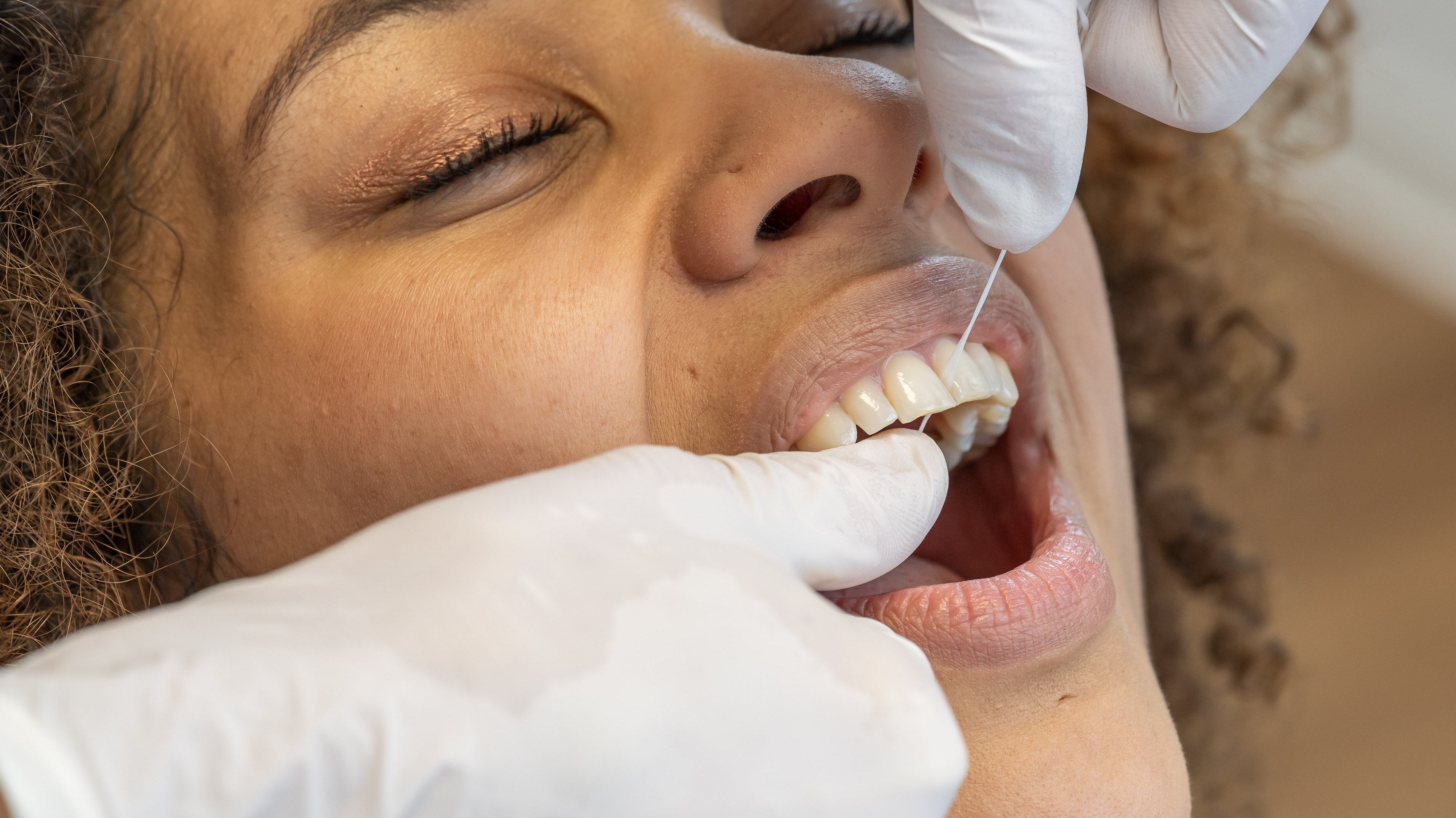 Die Behandlung zielt darauf ab, die Entzündung zu stoppen und den Zahnhalteapparat zu stabilisieren. Zunächst entfernt die Zahnärztin oder der Zahnarzt harte und weiche Beläge professionell. Patientinnen und Patienten erhalten klare Anleitungen zur Pflege, besonders zur Reinigung der Zahnzwischenräume. Reicht das nicht aus, werden unter lokaler Betäubung die Wurzeloberflächen gründlich von Bakterien befreit. Werden in den Zahnfleischtaschen nach der Reinigung Tiefen von 6 mm und mehr gemessen, sind chirurgische Eingriffe erforderlich. Das Behandlungsziel sind Taschen mit maximal 4 mm, die beim Messen nicht bluten. Bei bestimmten Krankheitsbildern können Antibiotika unterstützend zum Einsatz kommen. Nach der aktiven Therapie beginnt die entscheidende Phase: die regelmäßige Nachsorge. Alle drei bis sechs Monate kontrolliert die Praxis die Taschen und reinigt die Zähne professionell. „Parodontitis ist behandelbar – aber nur mit konsequenter und lebenslanger Mitarbeit“, betont Dr. Derman.